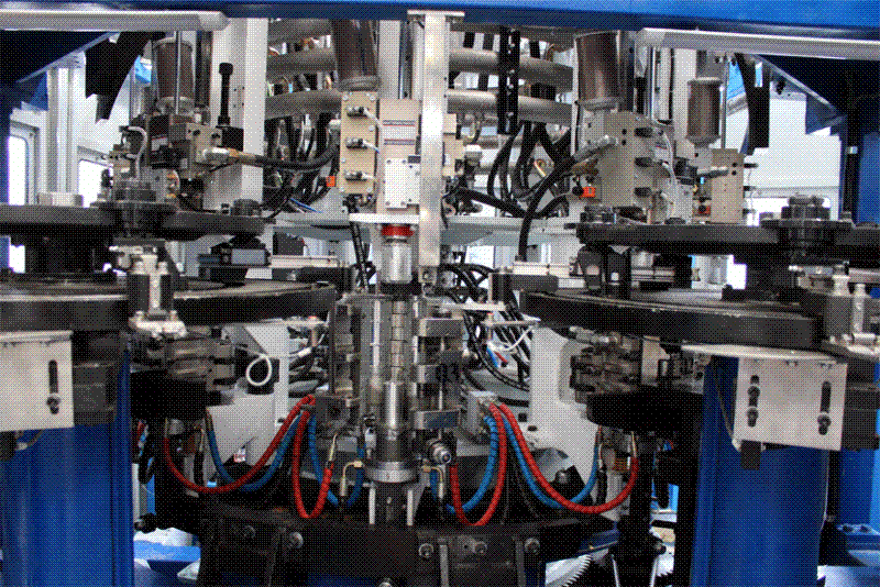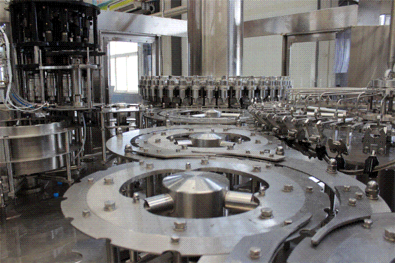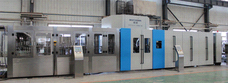 吹瓶部分實施了(le)機械手雙層軌道曲線設計、吹瓶機模號加裝壓力檢測裝置、主吹輪氣源進出采用旋轉式動靜密封氣套(發(fā)明專利產品)、吹瓶機主吹輪采用旋轉式機械補償水套等多(duō)項技改(gǎi)措施,大大加強了吹瓶運行的安全(quán)性(xìng)、穩定性,並(bìng)延長了關鍵部件的使(shǐ)用壽命。